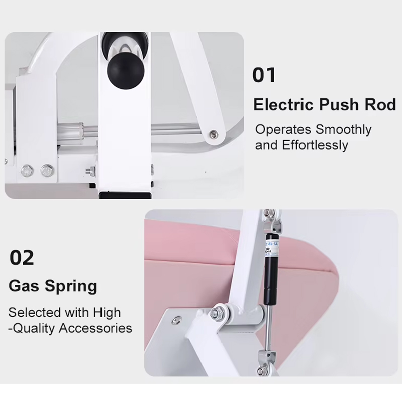 The main frame features a white anti-rust powder coating, paired with pink PU leather upholstery on the seat, backrest, and hip-leg support pads — combining aesthetic appeal with durability.
