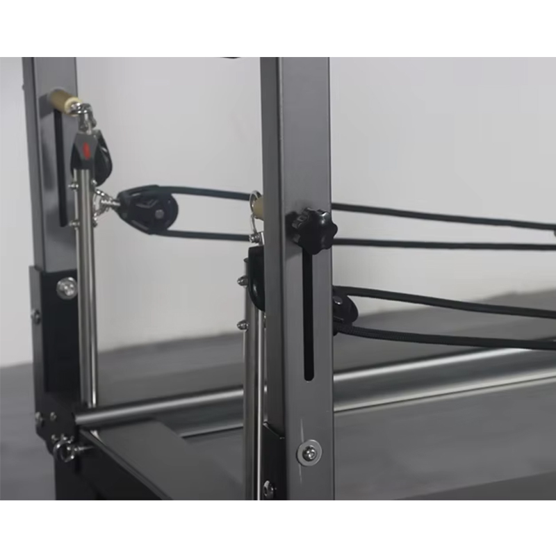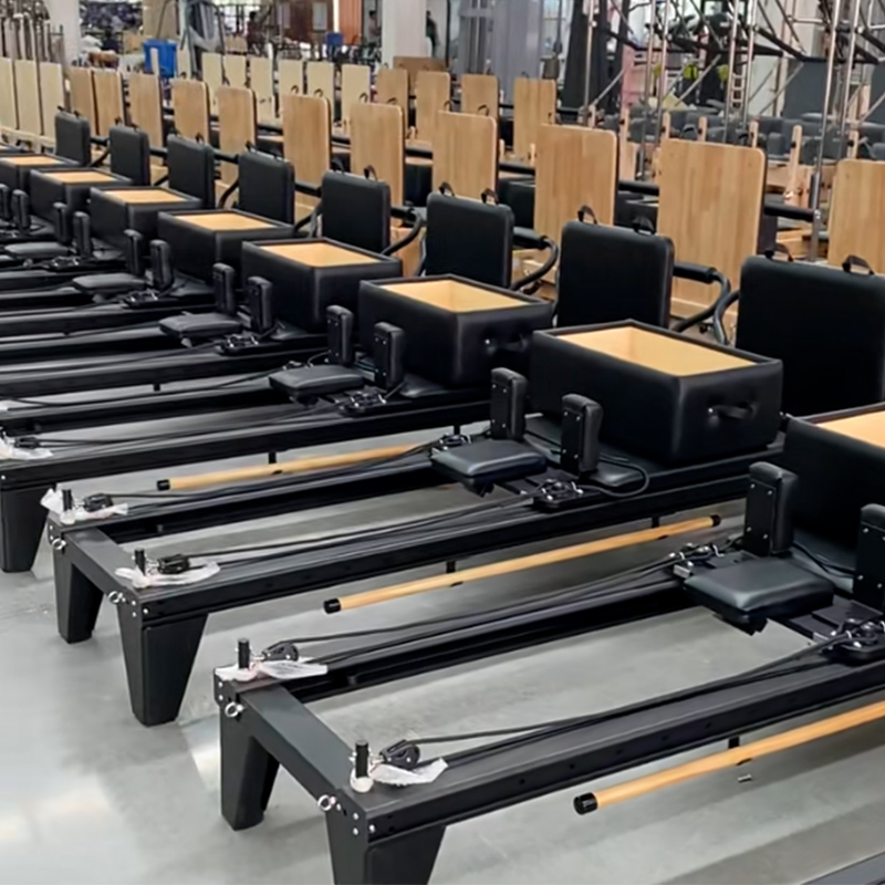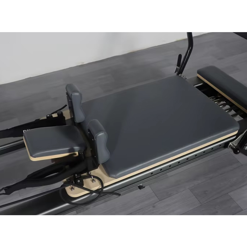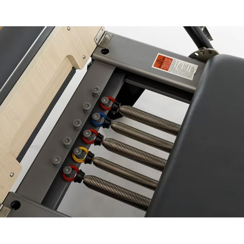 Before use, check that all parts of the aluminum alloy full-track Pilates reformer are secure. Inspect the guide rails for any debris and ensure the springs are correctly installed. Select springs with resistance levels suitable for your training intensity and physical ability, and attach them to the reformer bed. Wear comfortable, stretchable sportswear and remove jewelry or other accessories.