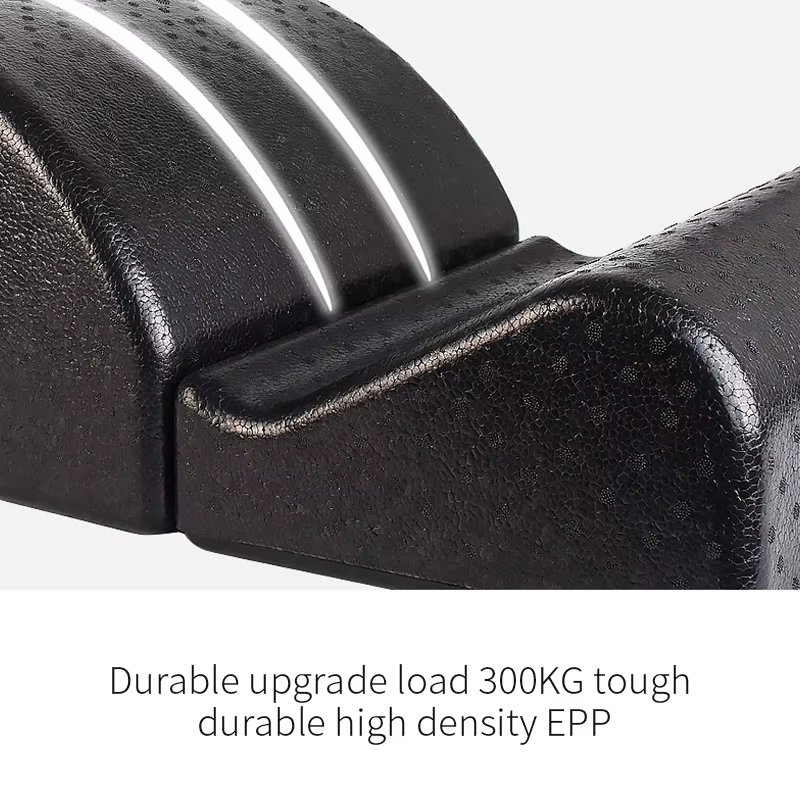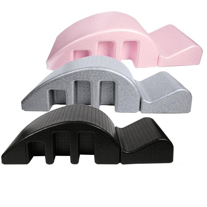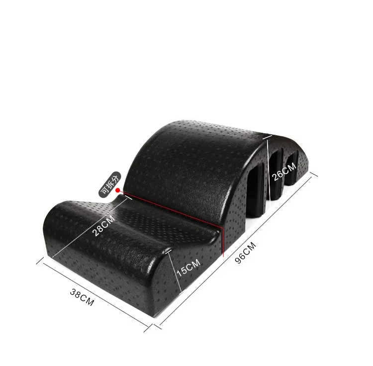 With a dual-curve structure, the low curve (~15 cm) supports leg balance and comfort, while the high curve (~26 cm) provides targeted back support, aiding spinal alignment. Some models feature a multi-point massage matrix to promote muscle relaxation during spine corrector workout sessions. The device is foldable or split into two pieces for easy storage, assembly, and transportation, making it ideal for home, studio, or rehabilitation use.