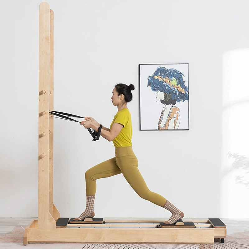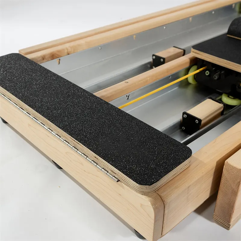 Constructed from high-quality solid wood such as maple or oak, the frame offers exceptional stability, high load-bearing capacity, and natural aesthetic appeal. The smooth sliding bed and precision-engineered tracks ensure low-noise, fluid movement, allowing users to perform exercises safely and efficiently. This versatile Pilates reformer workout equipment is suitable for Pilates studios, rehab centers, athletic training facilities, and professional home gyms.
